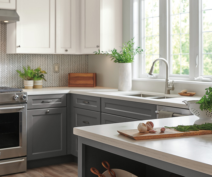 Macaulay features popular flat panel styling with a 5-piece drawer front and just the right amount of door detail to add visual interest without being fussy.